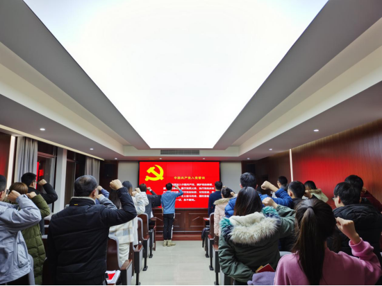 随后,过靖怡、梅宏达、蔡莉、吴志君、徐玖龙五名同志分别宣读转正申请,党内联系人介绍其基本情况,组织委员蔡明旭汇报支部审查结论。支部认为五名同志预备期已满一年,符合转正条件,之后以无记名投票方式,全票通过了转正申请。支部副书记李泽宇同志宣读了支部大会的表决决议。另外,支部副书记李泽宇同志带领新发展党员和支部党员一起进行了入党宣誓,支部书记黄裕同志带领大家民主讨论了下月党日活动举办和心得分享形式。