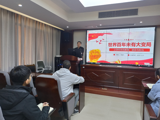 12月25日下午4:30在交通楼425,同人动漫 房产处杨旭东处长以 “世界百年未有之大变局”专题,为研究生第六党支部讲授研究生的培养与教育内容。本次党课目的是结合时代发展机遇,培养高素质研究生人才,激励党员同志奋勇前行,合理规划学习工作和生活。