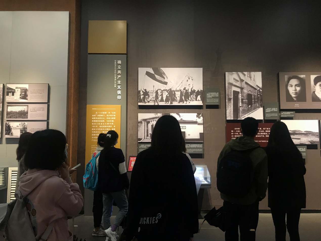 最后,满怀着对刘少奇同志的尊敬与爱戴,全体成员又来到刘少奇生平业绩陈列馆。馆内共有5个展厅,以“伟大的探索者,卓越的领导人”为主题,全面系统地展示了刘少奇的生平思想和丰功伟绩。2008年刘少奇诞辰110周年之际,刘少奇纪念馆进行了扩建和重新陈列布展,占地面积由3000多平方米扩大至7000多平方米。建筑为自由分散型园林式风格,与炭子冲的山水田园风光相映成趣,浑然一体。跟随伟人的脚步,缅怀伟人的过往,全体成员不仅能看到刘少奇同志在探索中国特色社会主义道路方面的远见卓识,也不禁感叹道刘少奇同志不愧为共产党员的典范、人民公仆的楷模。
