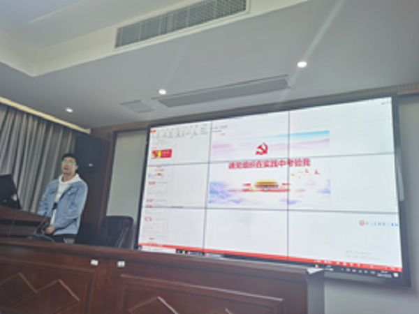 下午3点,各位发展对象候选人于交通楼515参加积极分子理论测试。会议伊始,蔡明旭同志对本次答辩会的流程进行了简单的介绍。随后,7位发展对象候选人依次展示答辩PPT,讲述了对党组织的认识、入党动机、理论学习和社会实践等方面的情况,汇报了成为积极分子以来自己在学习、工作、生活等方面的表现。在每位候选人陈述完毕后,每位支委有针对性地对候选人进行提问,主要聚焦入党动机、时事政治等相关问题。答辩同学沉着有条理地阐释了自己的观点,展现了良好的综合素质。支委会对各位发展对象候选人近期为答辩所做的工作表示充分肯定,认为各位同志在思想上、学习上、行动上均能坚守党的初心、践行党的宗旨,但也存在一定的完善空间。支委会表示,无论本次发展成功与否,希望各位候选人能继续坚守初心,不断强化理论学习,以实际行动向党组织靠拢。