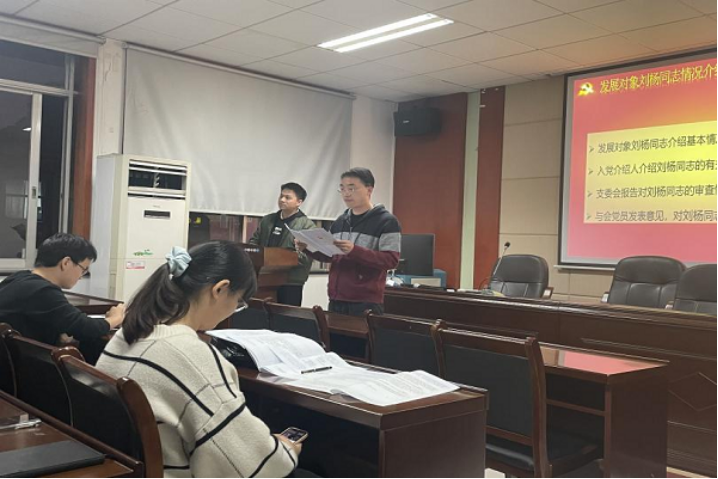 在学习了总书记近期系列讲话精神后,大会进行发展对象表决及接收。会议应到会具表决权人数21人,实到会具有表决权人数19人。经过发展对象同志基本情况介绍、入党介绍人报告其有关情况、支委会报告其审查情况、与会党员发表意见及讨论、无记名投票等流程,研五支部决定接收预备党员朱安源、康蔚、刘杨、司鹏浩、黄冲、刘子楠六位同志,六名发展对象均获得19票赞同票,顺利通过大会表决成为一名预备党员,他们将在党的领导和监督下继续学习、不断提升自我,做一名爱国爱党的好党员。