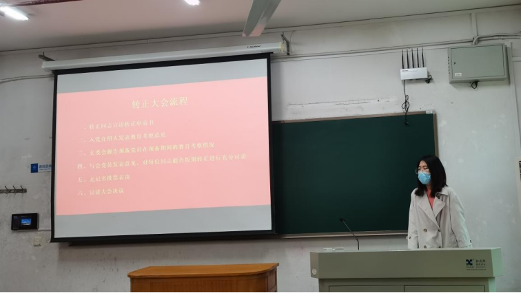 最后,石晓琪书记进行了点评和总结发言。首先她对四位同志预备期内的表现以及本次汇报内容进行了肯定,也期望在场的每位同志都向榜样力量看齐,再接再厉。接着,她说到18级同志们毕业离校将近,要尽快逐一落实工作交接任务,发挥好“传帮带”作用,共同为支部的建设与发展奉献力量。此外,她提醒同志们接下来即将举办的党日活动,要在满足防疫要求的前提下,办出新意,办出价值,充分发挥先锋模范作用。