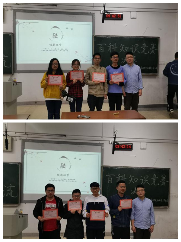 百科知识竞赛对于丰富学生的校园文化生活,促进学生综合素质的全面发展,进而加强学院的学风建设、知识文明建设具有重要意义。此次知识竞赛题型丰富多样,涵盖了天文地理、时政热点、历史文化等多个方面,意在考察同学们的综合知识储备能力,不但使同学们掌握了知识,更让同学们学会了如何运用知识,引导同学们关注社会热点,希望同学们能够在日常生活中领悟“博学之,审问之,慎思之,明辨之,笃行之”的真正内涵,在这些过程中充实和激励自我,最终在德智体美劳各方面全面发展。