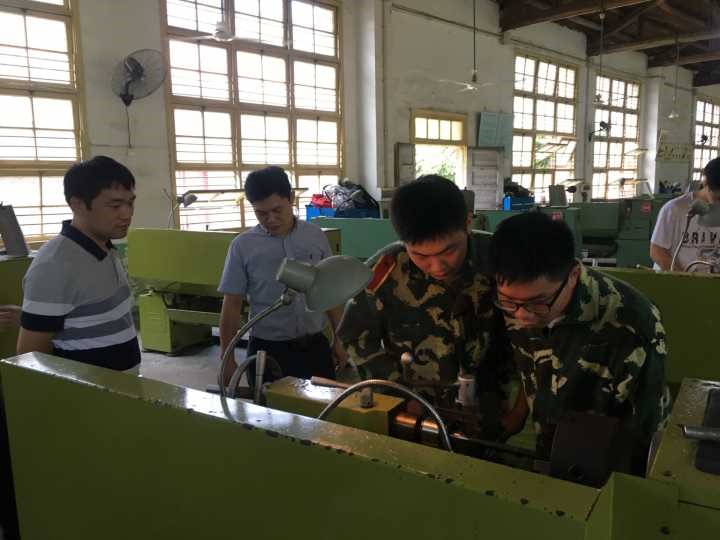 7月17日上午11点,同人动漫 党委副书记宋晓东老师,18级辅导员黄永明老师和陈晨老师来到金工实习的车间现场,看望在车间学习工作的设备专业同学们。