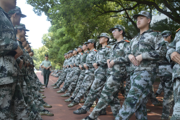 随着一声口令,军训正式开始了。我们终于要见到他了,心情无比激动。初见是令人惊艳的,没有辜负我们久久的等待。教官英姿飒爽,步伐沉稳,身姿挺拔,再多华丽词藻也堆砌不出他军人的出色气质。他用娴熟的口令带领大家完成一个又一个的目标,烈日当空,我们痛却快乐。