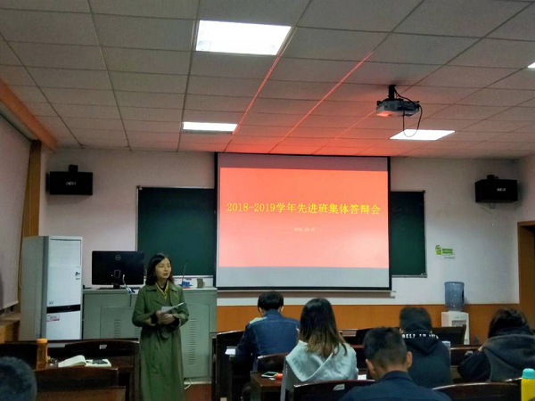 此次答辩分为抽签、答辩、提问、投票与点评五个环节。各答辩班级按照抽签顺序进行答辩,各班主要从班级简介、班级建设、班级荣誉、未来展望等各方面进行了班级风采展示。各个班长自信地介绍着过去一年中班级取得的各项成绩,有的班级在各类竞赛方面表现突出,有的班级在学风建设方面取得进步,有的班级在社会实践方面参与度提高。各班同学在学习上互帮互助,生活上互相关心,集体生活中各施其能、团结奋进,展现出了良好的班级风貌。答辩后的提问环节中,张佳琪老师、王雨龙同学、各班班长及团支书向各答辩班长提出问题,各班班长针对本班的具体情况回答了老师和同学们的问题。