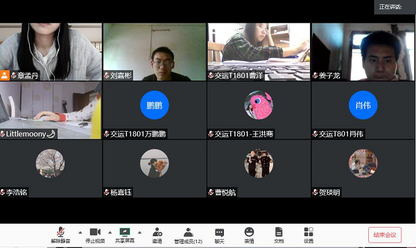 新冠病毒肺炎疫情爆发以来,交通运输T1801班的同学们不仅能够保护自身安全自觉、主动地完成线上课程的任务,在学习群中及时交流自己的问题除此之外,班长和学委还积极响应学校知新馆的号召,借助腾讯会议开展班级线上“云自习”,帮助同学们提高居家学习的效率,为同学们提供共同学习进步的平台。