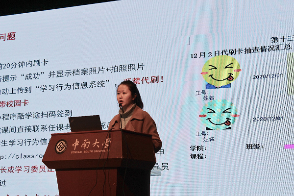物流工程1901班班长姜文同学从班级学习氛围的养成、班级学风建设和班级工作建设三个方面进行了班级建设和管理方面的经验分享。关于班级学习氛围的养成,姜文总结为“先学带动后学、做好寝室学风建设、保持集体学习和运动、共享学习资料”四点。姜文建议班委和班级同学们多尝试换位思考,相互理解,共同进步。