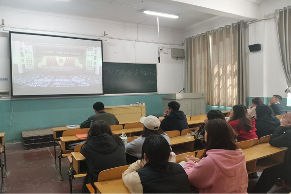 随后,班长李明哲同学带领全班同学共同观看了关于本次全国两会的学习视频,视频以《国民经济和社会发展第十四个五年规划和2035年远景目标纲要》和两会内容为主题,以各行各业工作者为切入点,浅析了在“两个一百年”重要历史交汇点上,中国经济社会的发展方式。在观看视频后,同学们加深了对两会精神和“十四五”规划内容的理解,加强了个人社会责任使命感。