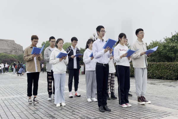 4月17日上午,在交设1904团支部书记唐萌的组织下,部分同学前往游览橘子洲,瞻仰伟人雕像,学习先辈精神,并在伟人像前进行了诗歌朗诵,以表达对革命先烈的崇敬之情、缅怀之情。团员们深刻体会到了湖南革命先烈们视死如归、勇往直前的革命精神,意识到时代重任在肩,应不忘初心牢记使命。