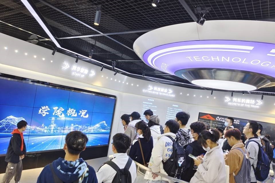 首先,同学们在讲解员的带领下参观了铁路园和先进轨道交通科普馆。铁路园内陈列的三台机车,是我国轨道交通特别是中国铁路机车从无到有、从弱到强、产品更新换代的三个重要发展历史阶段的里程碑标志。铁路园讲解员带领同学们回顾了我国铁路机车的历史,并为大家介绍了我国铁路事业中涌现的一大批优秀共产党员的先进事迹。