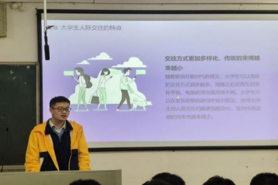 游戏结束后,瞿金阳同学对“人际交往”的相关知识展开了讲解,其讲解内容涵盖了人际关系特点、人际交往中的病态心理、自我保护的原则等方面内容,并且以三个典型的案例向同学们解释了病态心理的不同表现方式。在讲解过程中,他着重介绍了七种常见的病态心理和四个人际交往应当遵守的原则,同学们听后表示收获颇丰。