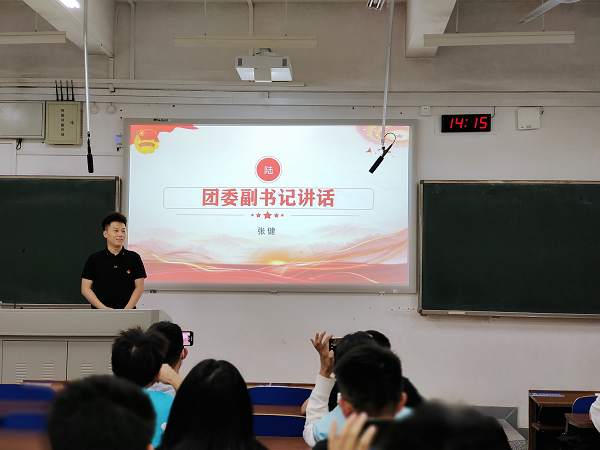 团支书经验分享完毕后,团委副书记张健老师做会议总结。张健老师首先肯定了本次大会是一场务实、及时的大会,他以的团支书工作经验出发,强调了实践的重要性。张老师指出,“党旗所指,团旗所向”,团支书要保持高度的政治敏感性和自觉性,在开展团支部工作时要紧扣主旋律,提前做好工作安排,注意调动团支部同学的参与积极性。张老师还建议团支书与组宣委员保持紧密协同合作,做好成风化人的班级宣传工作,凝聚向心力。