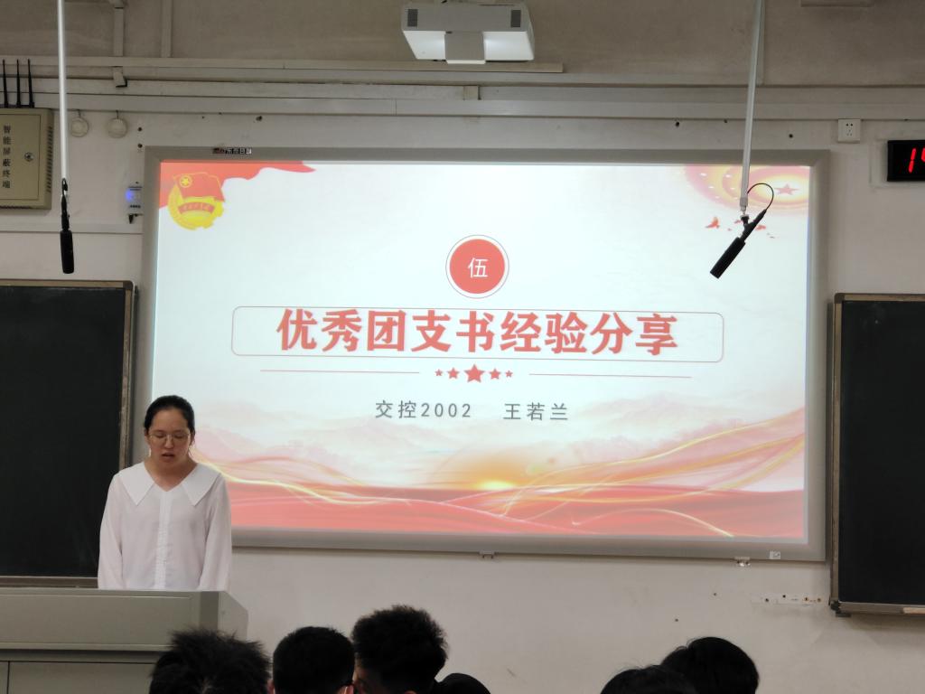 随后,来自交控2002班的优秀团支书王若兰同学做团支书工作经验分享。她认为,耐心、细心和合理得当的安排在团支书工作中非常关键,这样可以在严肃谨慎的同时让工作变得更加有趣,进而更好地调动同学们的积极性。对于就任态度,她认为,作为团支书最重要的就是要摆正自身位置,要设身处地为班级同学考虑和安排。在各项活动中,都应该保证同学们有提出建议和不满的权力和机会。团支书个人也要不断加强自身修养,提高工作学习能力,增强使命感和责任感,为同学们做出表率。