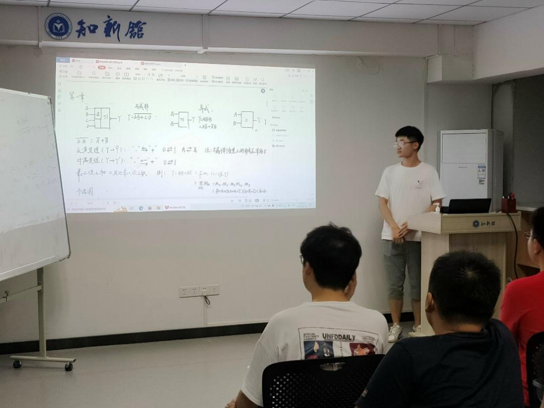 本次辅学活动以同学讲解为主,由班级内学习方法较好、成绩优异的同学带领大家进行知识点的整体回顾,并进行答疑解难。辅学活动中,“班级学霸”杨林乐同学为了帮助同学们找到复习重心,能够更加有效地进行复习,对数电模电每章的重点考点进行了总结。活动期间,杨林乐同学根据总结的重点考点,先带领大家对课程内容进行了整体回顾,之后通过经典例题的讲解,逐一对疑难问题进行攻克,加深了同学们对课程重点的理解和掌握。最后,同学们根据自身情况进行复习,遇到问题互相讨论,在交流沟通中及时发现并解决复习过程中遇到的问题。