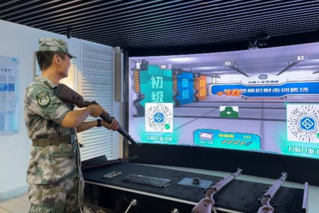 9月14日下午三点,同学们在毓秀楼集合,在团支书的带领下前往国防教育室。在讲解员精彩的讲解下,同学们了解了近代、当代国防的发展振兴和中国武装力量的建设成就。在观看“同人动漫 的国防成就”后,支部同学们深切感受到学校和祖国发展同频共振,自豪感油然而生。讲解完毕,同学们自由参观了拓展学习区。栩栩如生的武器模型和相关的电子资料介绍让同学们对国防科技有了更进一步的了解。最后一个环节是射击体验,同学们通过现代化科技,身临其境地感受到军人们在战场上面对的险象环生的境况和激情勇猛的身姿。