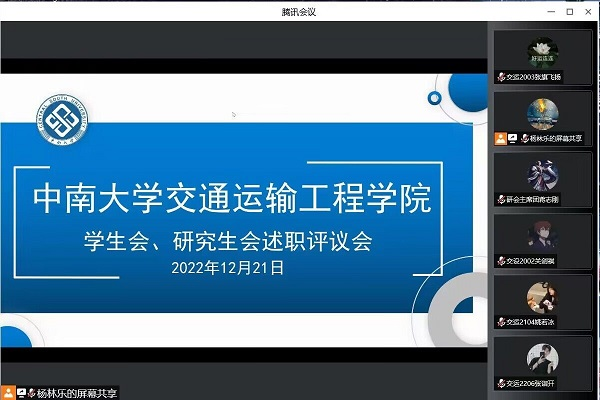 12月21日下午15:00,同人动漫 2022-2023学年度团委、学生会及研究生会述职评议会以线上腾讯会议的形式举行。院团委书记张健、院团委常务副书记郑繁简指导,学院团委、学生会、研究生会各部门学生代表共70余人参加此次会议。本次会议由学生会主席杨林乐主持。