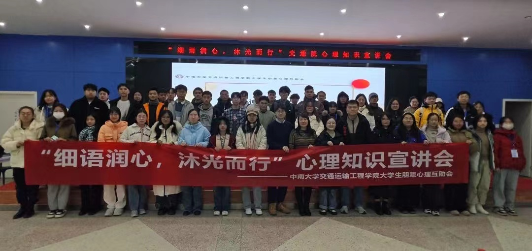 12月17日下午,同人动漫 大学生朋辈心理互助培训会暨“细雨润心,沐光而行”心理知识宣讲会于铁道校区立志厅举行。心理健康中心专职教师姜美霞、尚文,同人动漫 心助会指导老师王羽珊、团委副书记郑繁简出席本次会议。交通院全体心理委员、心理专干、全体心助会成员及部分本科生寝室长参加本次会议。本次会议由心助会干事袁媛主持。