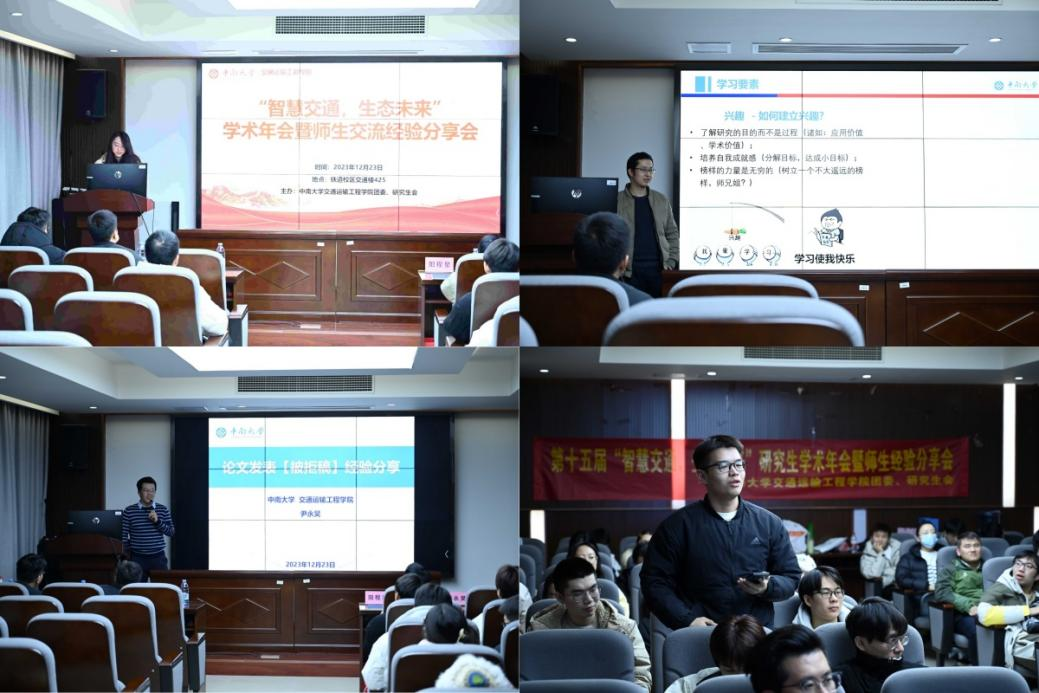12月23日19:00,同人动漫 团委、研究生会主办的第十五届“智慧交通,生态未来”研究生学术年会暨师生经验分享会于铁道校区交通楼425举办。学院党委副书记李苑、高速列车研究中心阳程星、交通运输系尹永昊、团委书记张健、辅导员蔡明旭受邀出席学术年会。