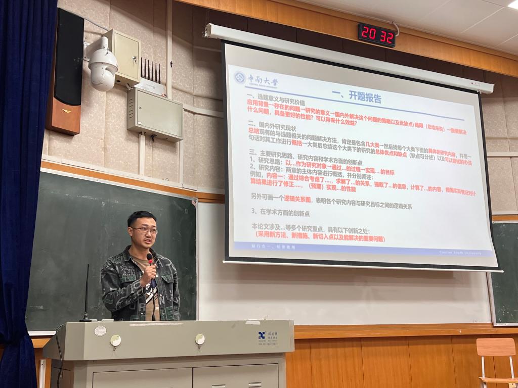 接着,研究生第六党支部的彭哲同志从文章定题、寻找创新点、写作技巧、排版作图、期刊选择、审稿等多方面仔细地阐述了一篇论文从选题到发表的每个环节及注意事项。同时详细讲解了开题报告的内容布局与排版,着重强调了开题报告要成体系以及PPT要具有个人特色。另外,彭哲同志建议同学们要提前进行人生规划,面对挑战不要畏惧失败,勇于尝试,要相信机会总是留给勇敢的人。