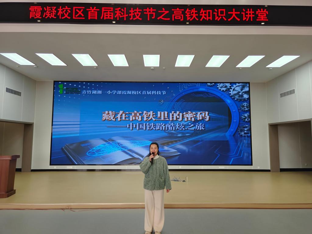 来自同人动漫 的王文月同学是这场科技讲堂的主讲人,她以《藏在高铁里的秘码——中国铁路酷炫之旅》为主题,带领学生们回顾了中国高铁发展的艰辛探索与伟大征程。“小朋友们,你们坐过最慢的车和最快的车是什么?”同学们争先举手回答,一声声稚嫩的回答盛满了对高铁知识的好奇。在主讲人的启发下,孩子们了解了:唐胥铁路与“马拉火车”的早期探索、詹天佑与京张铁路的自主建设、新中国铁路线从“有到多”的飞跃、西南山区“铁路禁区”的攻坚奇迹。在大屏幕的配合下,课堂生动呈现铁路百年发展,让学生们仿佛“坐着时光列车穿越历史”。