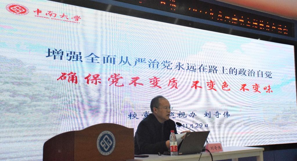 为进一步贯彻中共中央办公厅《关于加强新时代廉洁文化建设的意见》,落实学校纪委“六个一”工作思路和举措,营造风清气正的学院氛围,11月29日下午,校党委巡视办主任刘奇伟在铁道校区立志厅作了题为“增强全面从严治党永远在路上的政治自觉,确保党不变质、不变色、不变味”的廉政教育专题宣讲,学院党政领导、全体教职工党员参加,宣讲会由学院党委副书记宋晓东主持。