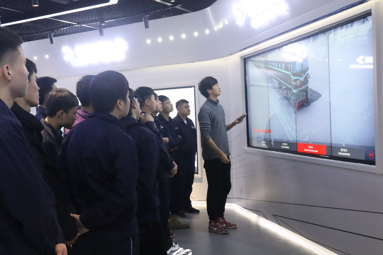 随后同学们到达了先进轨道交通科普馆。在馆内,参观者们可以利用多点触摸展示系统、VR互动体验、飞屏、触摸关联屏等现代化技术,系统性了解轨道交通发展历史、轨道交通运输管理、列车空气动力学与碰撞动力学等系统科技知识,见证中国铁路的发展历程。