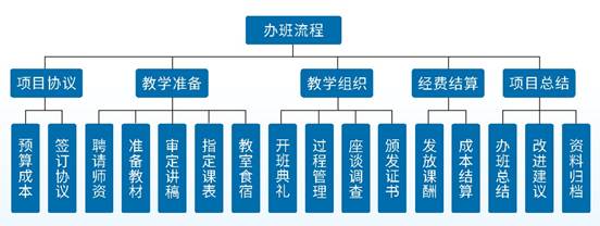 办班流程的规范是培训管理服务流程规范的终极标志。规范高质的办班管理服务流程可归纳为“五环节”。