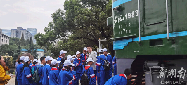 “铁路园”于2013年落成,修建了代表我国铁路各个发展阶段的三条轨道线路,陈列了三台极具代表性的铁路机车,是了解我国铁路发展史的重要基地。通过讲解员生动的讲解和与各个时期、各种类型机车的近距离接触,同学们对中国铁路的发展历史、铁路文物的文化价值都有了更深了解。同学们说:“铁路工人逢山开路、遇水架桥的奋斗精神值得我们学习和传承,我们一定会在以后的学习中更加努力。”