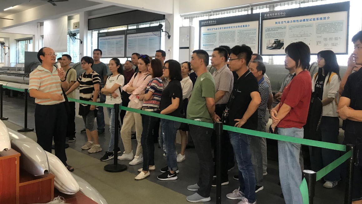 继续教育学院老师的带领下,“长沙国际铁路港铁路物流园区管理及公司制改革第一期培训班(39人)”和“广州局集团公司2019年消防安全管理人员第一期培训班(94人)”来访参观高速中心。学员参观了列车空气动力学动模型实验室、碰撞试件室外展示现场等,高速中心张健老师负责讲解与接待工作。