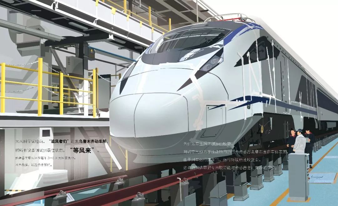 为了给孩子们讲解清楚“大风科学试验”,创作者一行人提前沟通了乌鲁木齐铁路局,得到了消息——线路正在进行“大风实验”,科研团队也刚巧都在,是搜集资料千载难逢的好时机。