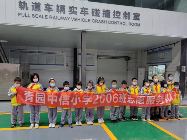 轨道交通科普基地进行参观实践。小朋友们在基地志愿者们的带领下,分别参观了科普馆、动模型实验室和实车碰撞实验室。
