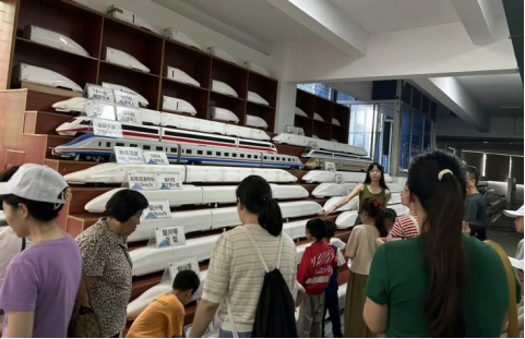 参观完科普馆后,在志愿者的引导下,大家来到动模型实验室。通过志愿者的介绍大家了解到,校内的试验平台是世界上实验速度最高、实验能力最强的,为许多科研攻关提供了实验模拟。而后志愿者又通过弹弓原理的类比,生动形象地向大家介绍了试验平台利用的瞬态加速技术以及与之匹配的瞬态测量技术和瞬态制动技术。大家在学习中感悟到了我国铁路交通行业的先进性,感受到了交通运输的魅力。同时志愿者以动模型为载体介绍中国高速列车发展的四个阶段以及未来的发展趋势,即车头流线型化和和车体平顺化。帮助研学成员通过实际的模型感受中国高速列车百年变迁。