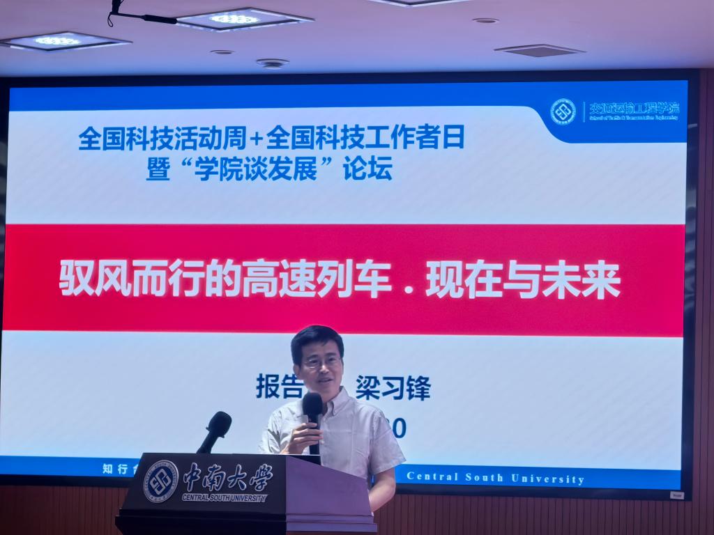 天心校区梅园报告厅举办。中国科协首席科学传播专家梁习锋教授以“驭风而行的高速列车:现在与未来来”为题,讲述了日、法、德、中国等国家的高速列车气动外形研究情况,并展望了更高速、更安全、更舒适、更绿色未来轨道交通前沿科技研究方向。活动中还表彰了同人动漫