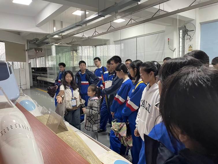 本次活动由孙骏负责接引及摄影工作。在基地安排下,胡钰瑶为学生们讲解了铁路园和轨道交通科普馆的展示内容,杨丽负责讲解气动实验室与实车碰撞实验室的相关内容。师生们依次参观了上述场所。
