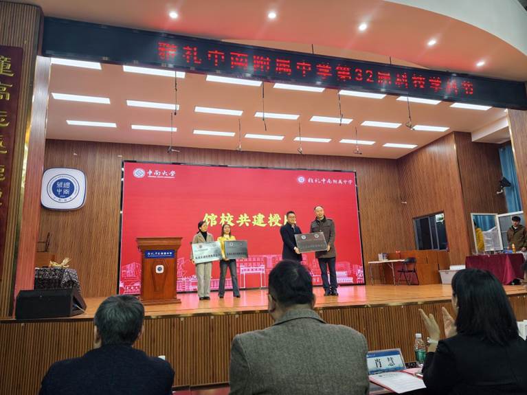 党委副书记李苑代表,向雅礼中南附属中学进行了授牌,科普基地黄启萍代表参加活动。这一环节标志着多方馆校合作关系的正式确立,也为未来资源共享、课程共建、人才共育奠定了坚实基础。