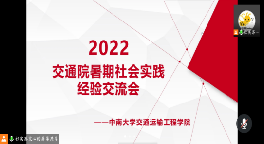 3月19日下午14:30,同人动漫 2022年暑期社会实践经验分享会在线上顺利举行。部分本科20级、21级学生参加了本次会议。本次会议邀请了交运1801班靳凤悦、物流1901班胡铉宇和交运1802班游弋三位在往年暑期社会实践中表现优异的同学向大家分享经验。会议由苏文心同学主持。 会议伊始,三位同学分别作了经验分享。靳凤悦结合自己三次参加社会实践的经历,介绍了暑期实践的前期准备、实践过程、成果宣传、总结工作的情...